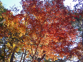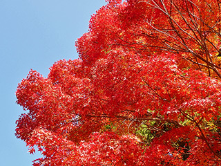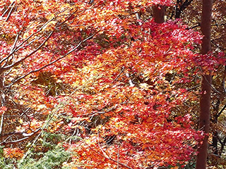 ここからは車で帰る途中で見かけた紅葉です。これはゲート近くの真っ赤なもみじ。