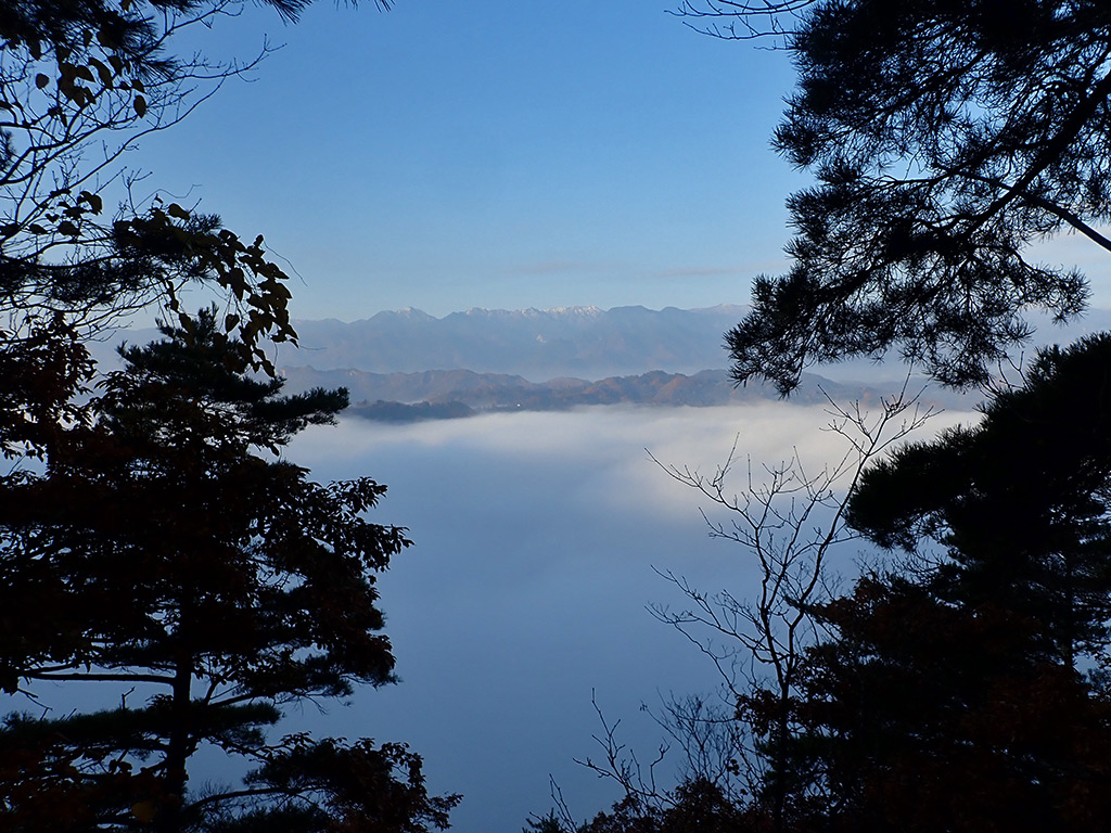 北アルプス側。やっと展望が開けました。相変わらず一面の霧。