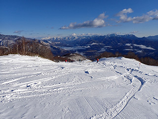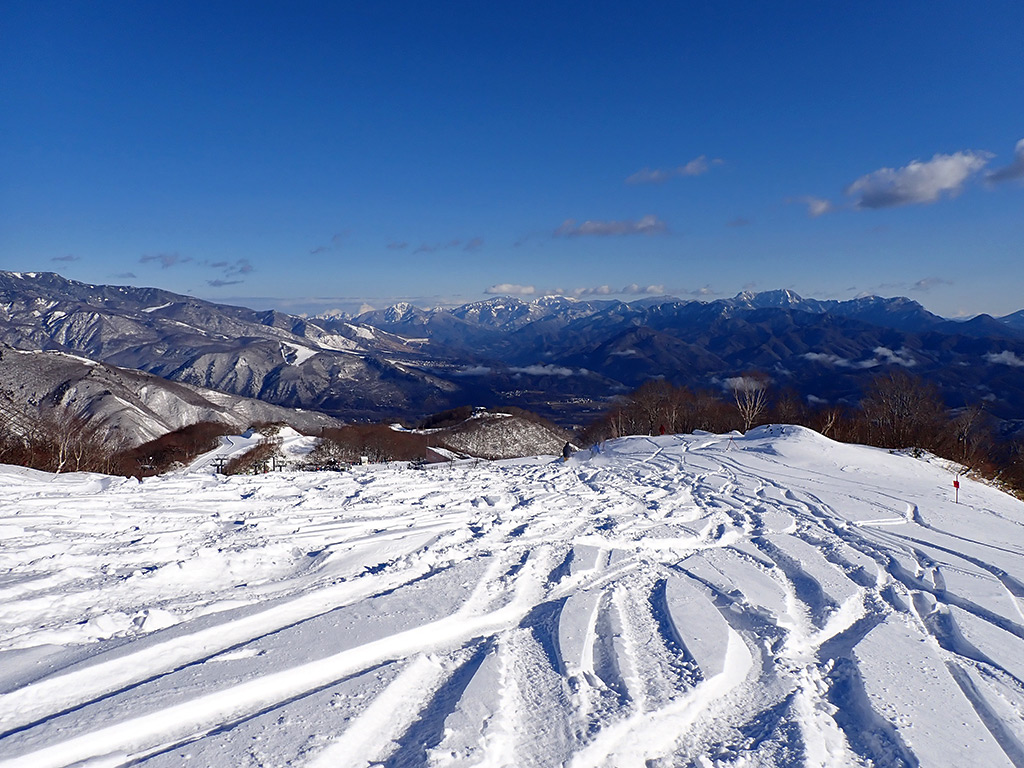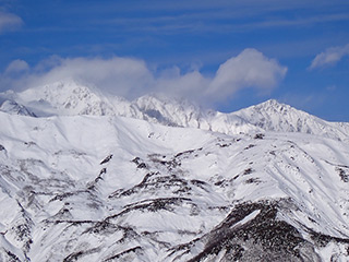 レストランで食事後、もうひと滑りして帰りましたが、その頃には白馬三山も少しだけ眺めることが出来ました。