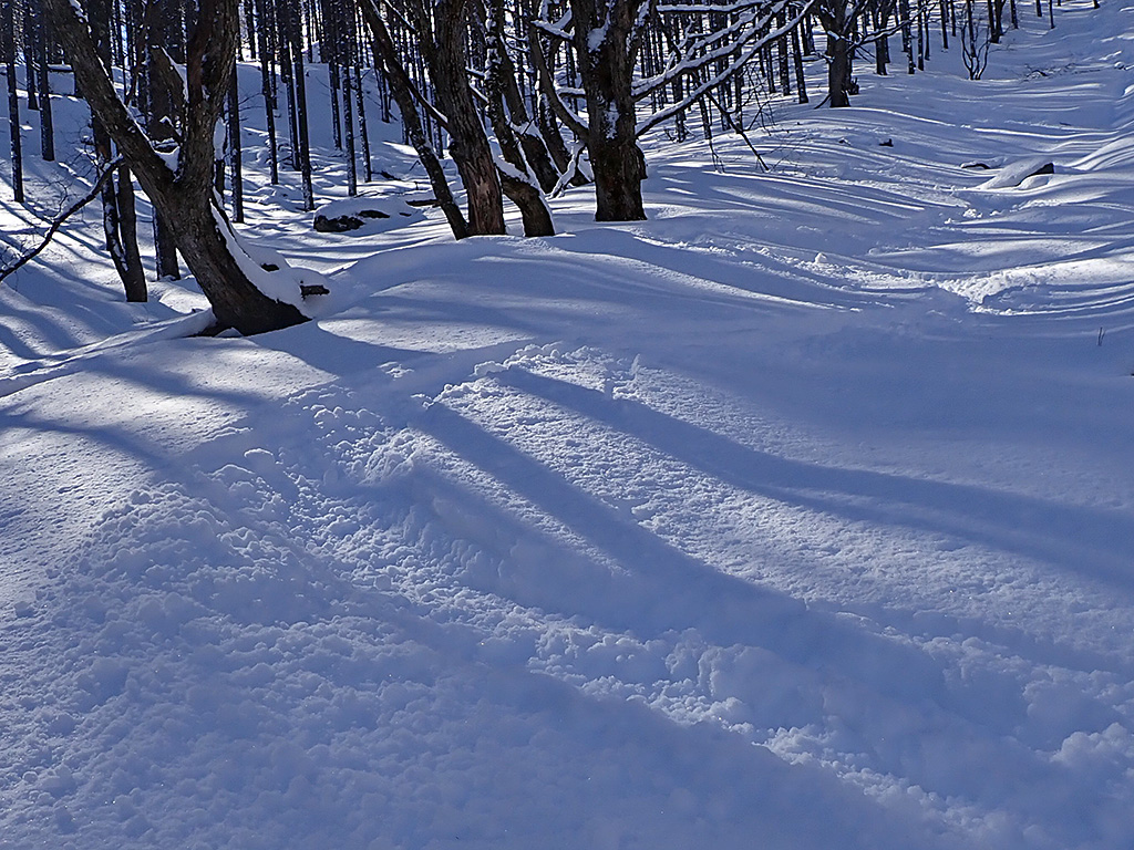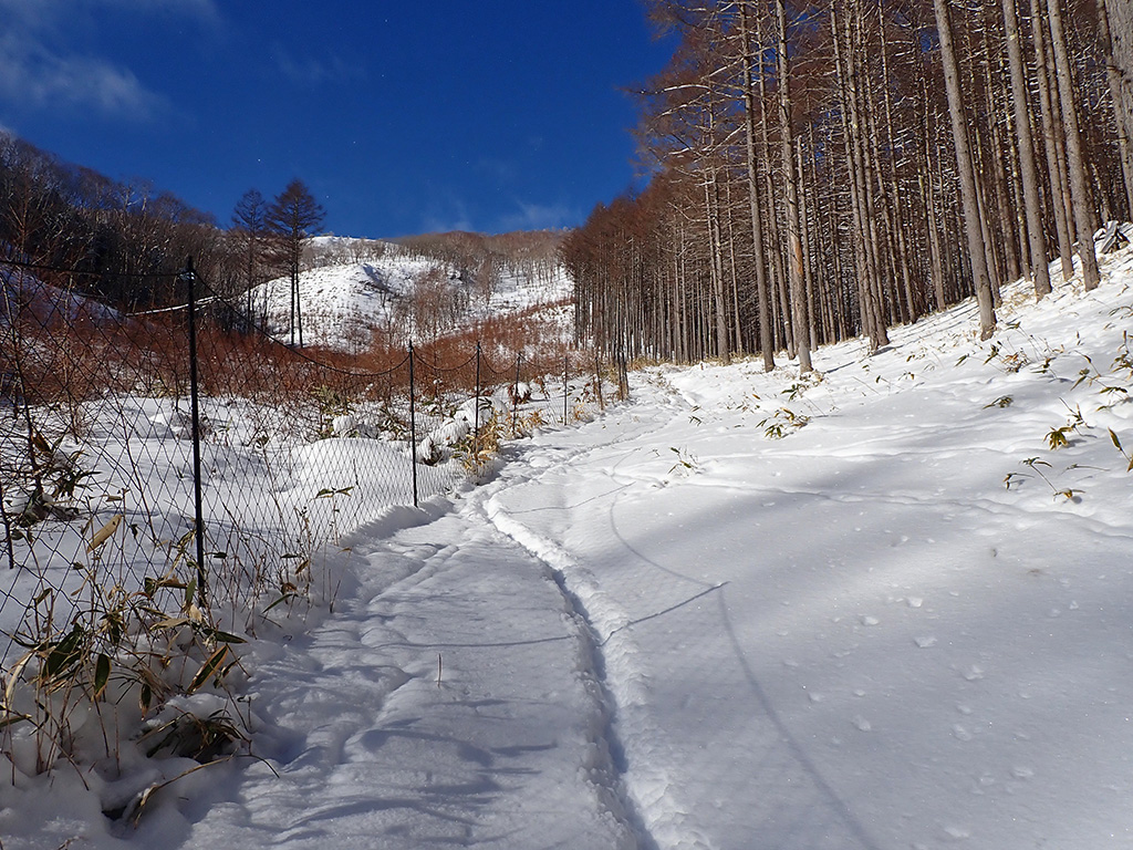 最初の林を出てからは積雪量も増え、岩を踏むことはほぼ無くなりました。