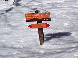 標識。3日前に比べて20cmは積雪が増えた感じです。