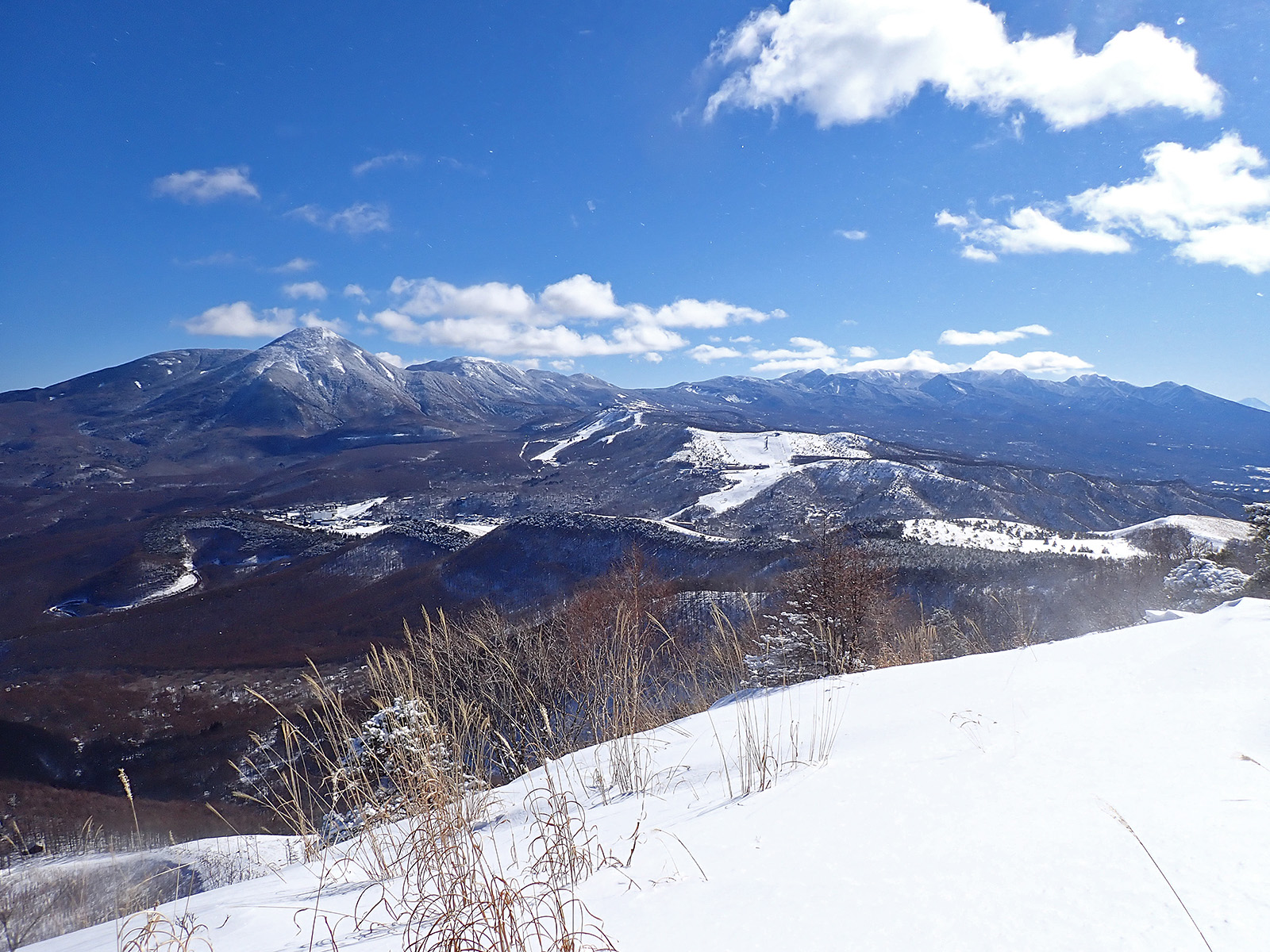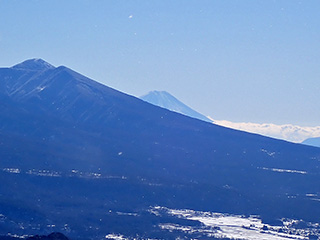 根子岳、四阿山、湯の丸山。根子岳が随分と真っ白に見えます。