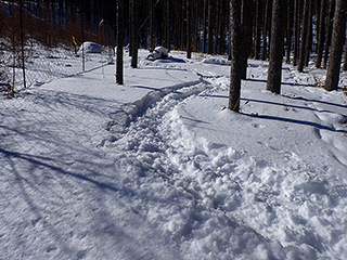 登山道に入ります。しばらくスノーシューのトレースが付いていて、ラッキーと思ったのですが、