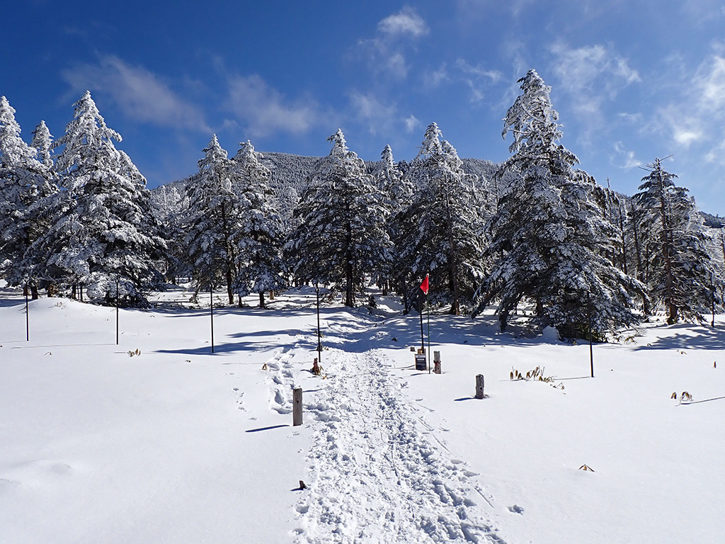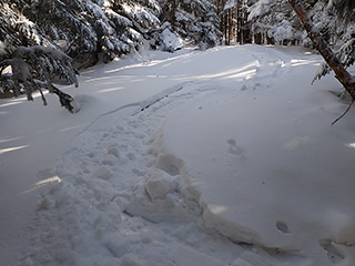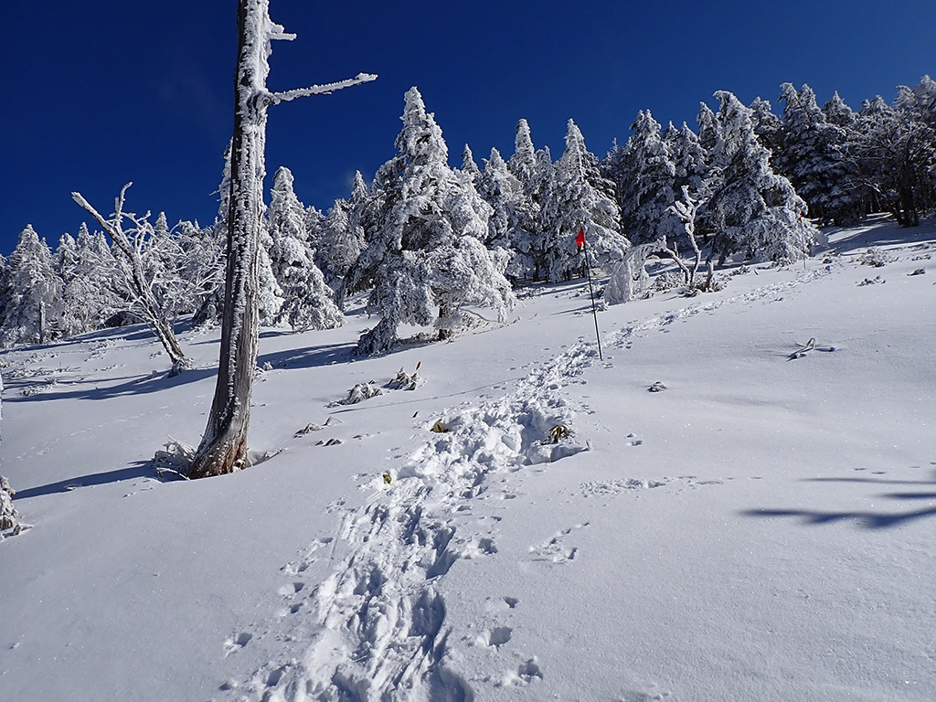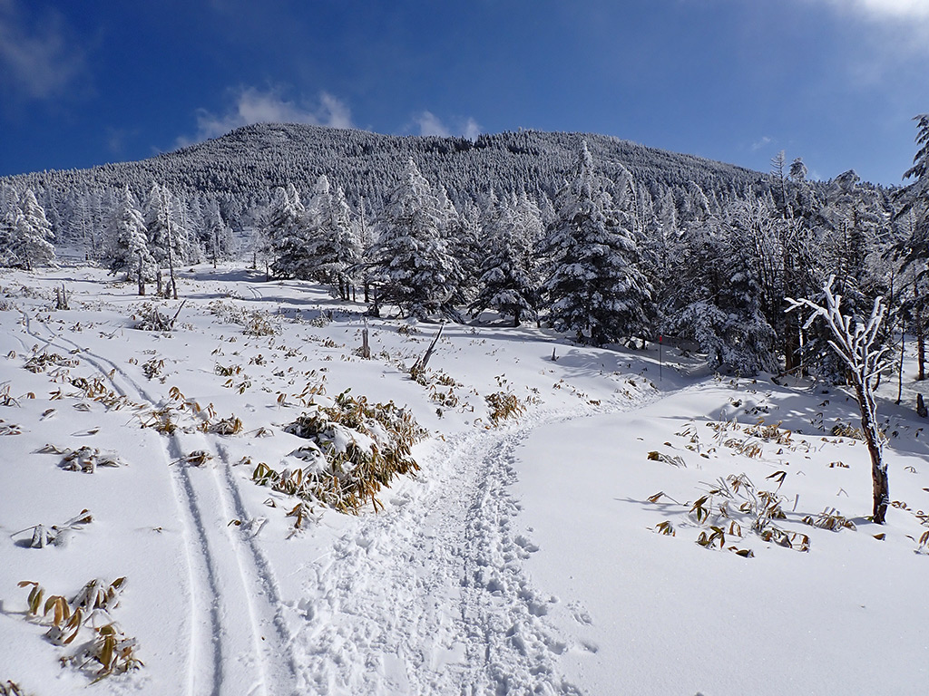 スノーシュールートに沿って進みます。ここから登り。