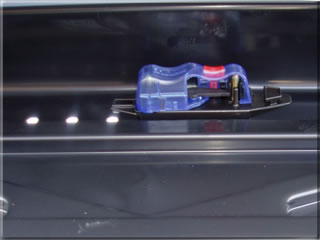 Ocean 500はイージースナップでワンタッチでキャリアに装着できるのが特徴ですが、やってみて確かにとても簡単でした。次の写真がそのイージースナップですが、赤いロックレバーを上げ青いカバーをひねることでU字型ボルトのロックが解除となり、カバーを逆にひねってロックレバーを下げることでU字型ボルトがロックされます。